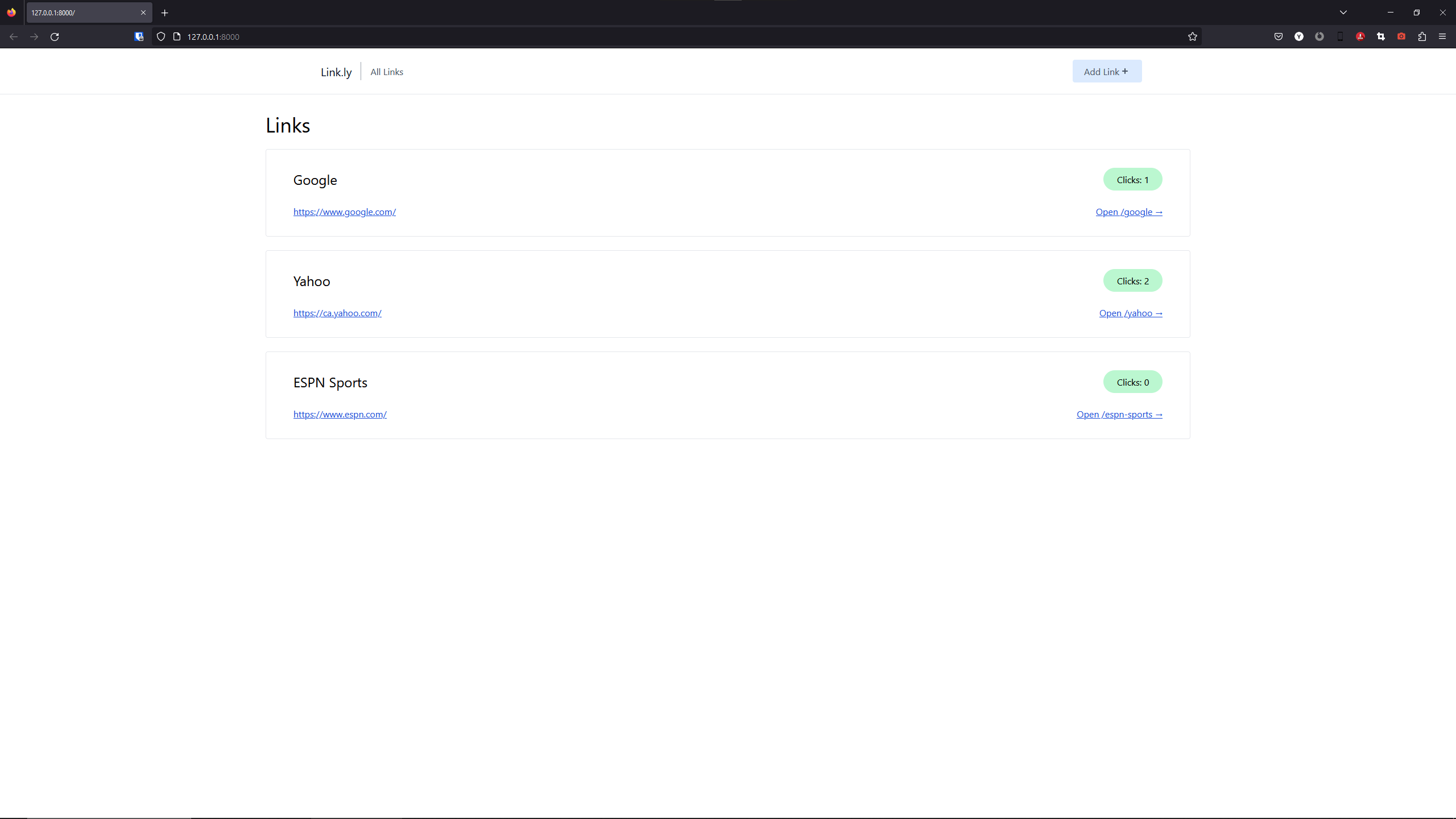 This web application replicates the functionality of popular link shortening and tracking services like Bitly. It empowers users to efficiently create concise, customized URLs for any webpage while offering comprehensive tracking capabilities to monitor link performance. With a user-friendly interface, users can effortlessly add new links directly within the application. Built on Django and featuring a stylish design with the Tailwind CSS framework, it provides a professional and user-centric solution for link management.